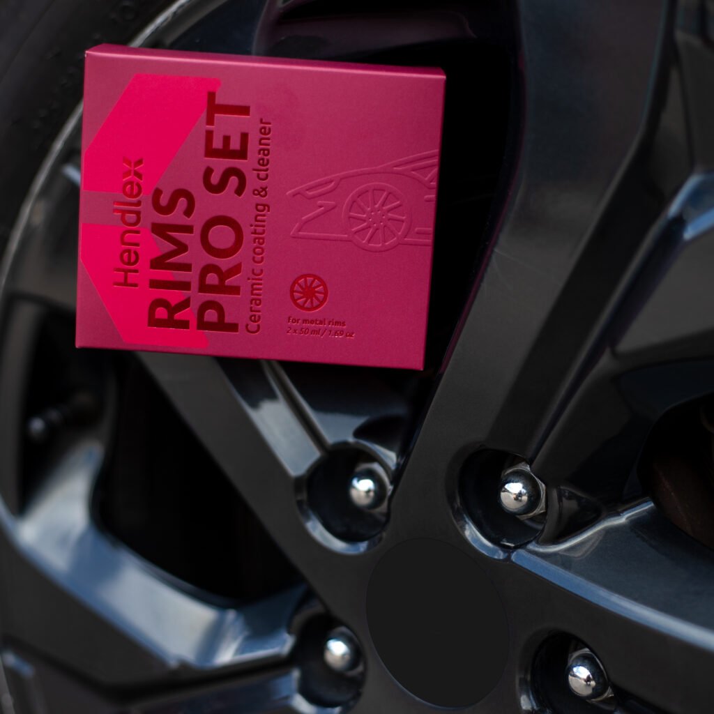 Hendlex Rims Pro ceramic coating designed to protect metal vehicle rims. Enhances the color of rims, prevents dirt, brake dust, and other contaminants from sticking to the surface.