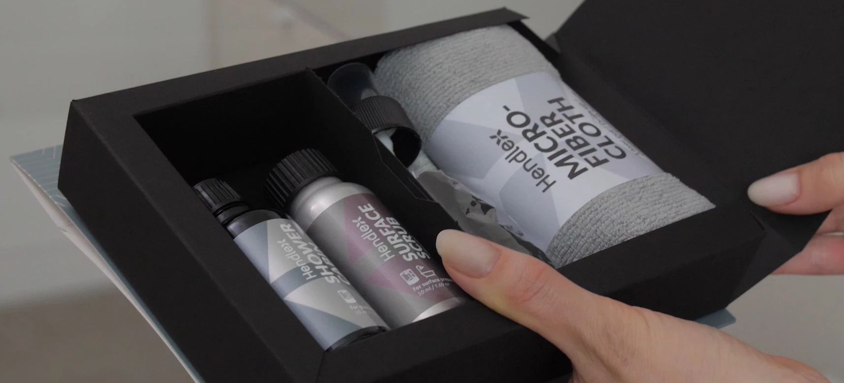 Hendlex Shower Cabin protection set is designed to be used on glass shower cabins. Included coating repels water and dirt, preventing hard water stains and the accumulation of limescale, soap scum, or other grime. Treated glass remains visually clear and aesthetically pleasing with minimal effort. Harsh chemical cleaning agents are not necessary, wet microfiber cloth is sufficient for cleaning.