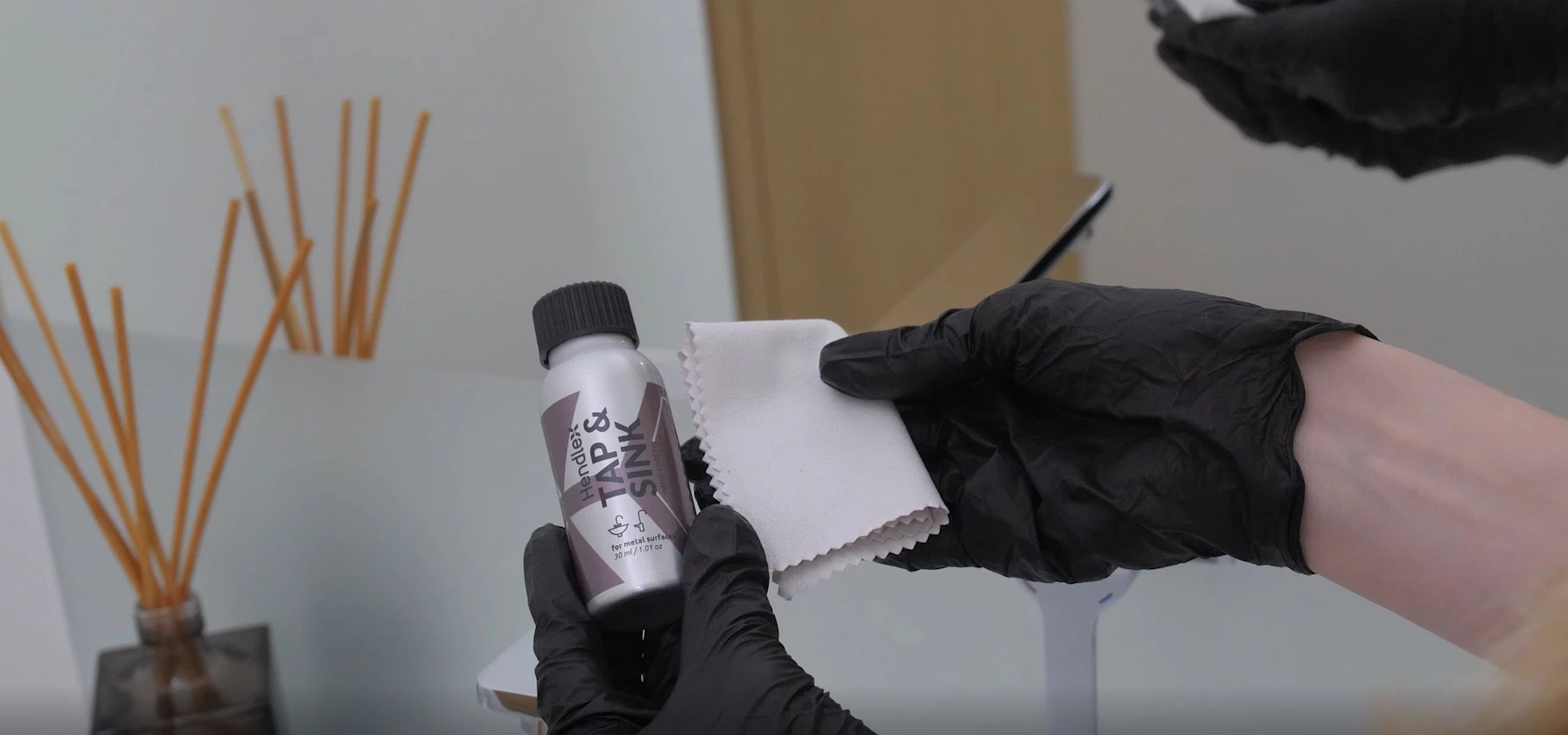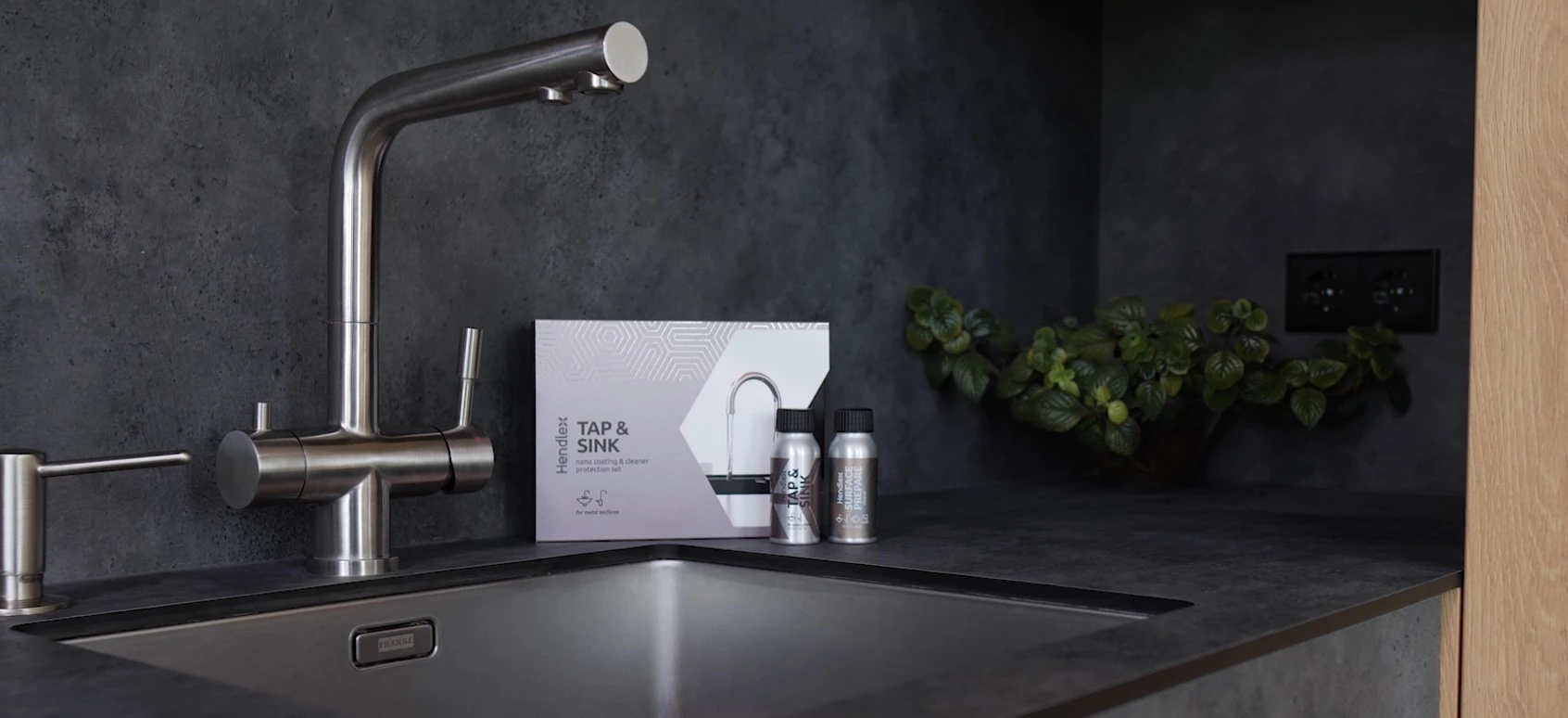 A durable and reliable nano coating for metal or ceramic sinks and taps. Forming a thin protective layer, the coating repels water, dirt, and oil, ensuring no contaminants stick to your sink or tap. Water-repellent effect prevents water from accumulating on the sink or tap and greatly reduces hard water stains or limescale deposits. The coating lasts for up to 6 months and does not change the appearance of the coated surface.