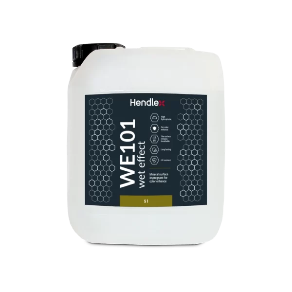 Hendlex WE101 is sealant of porous mineral surfaces, suitable for concrete, silicate bricks, cement plaster, lime clay bricks, stone surfaces. The product is water based and is free of organic solvents. Hendlex WE101 is absorbed into the pores and makes the surface hydrophobic. The product creates strong “wet surface” effect that sharpens the color of the coated surface.